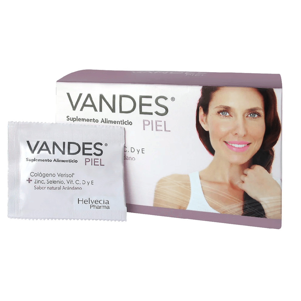 Complemento alimenticio específico para la salud de la piel en base a Péptidos Bioactivos de Colágeno Verisol® 100% que ayuda a recuperar la firmeza, elasticidad y suavidad de la piel desde el interior. Su formulación incluye vitaminas, minerales y aminoácidos esenciales para la piel. Dosis diaria recomendada: 1 sobre al día o según indicación médica, consumir con abundante agua.